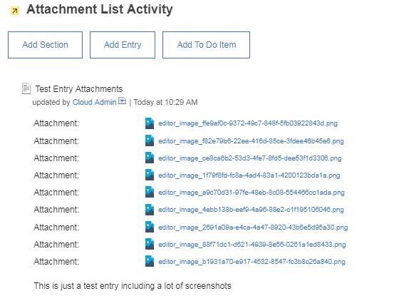 All those attachments are displayed with the unique generated URL at the beginning of the entry.