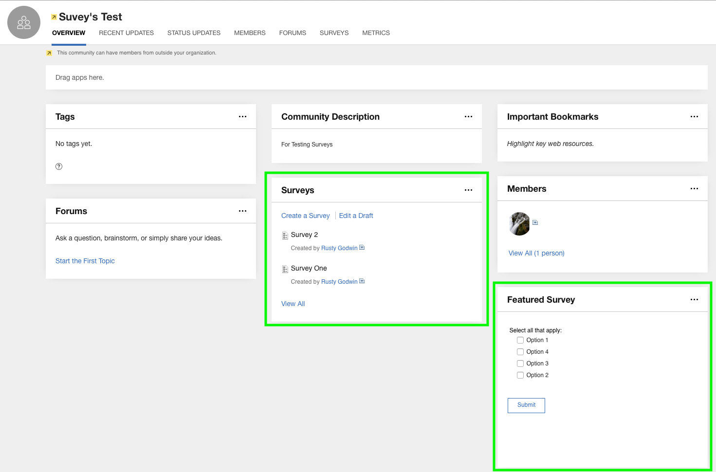 Make it possible to place the Survey app in the (home screen) Community on mobile