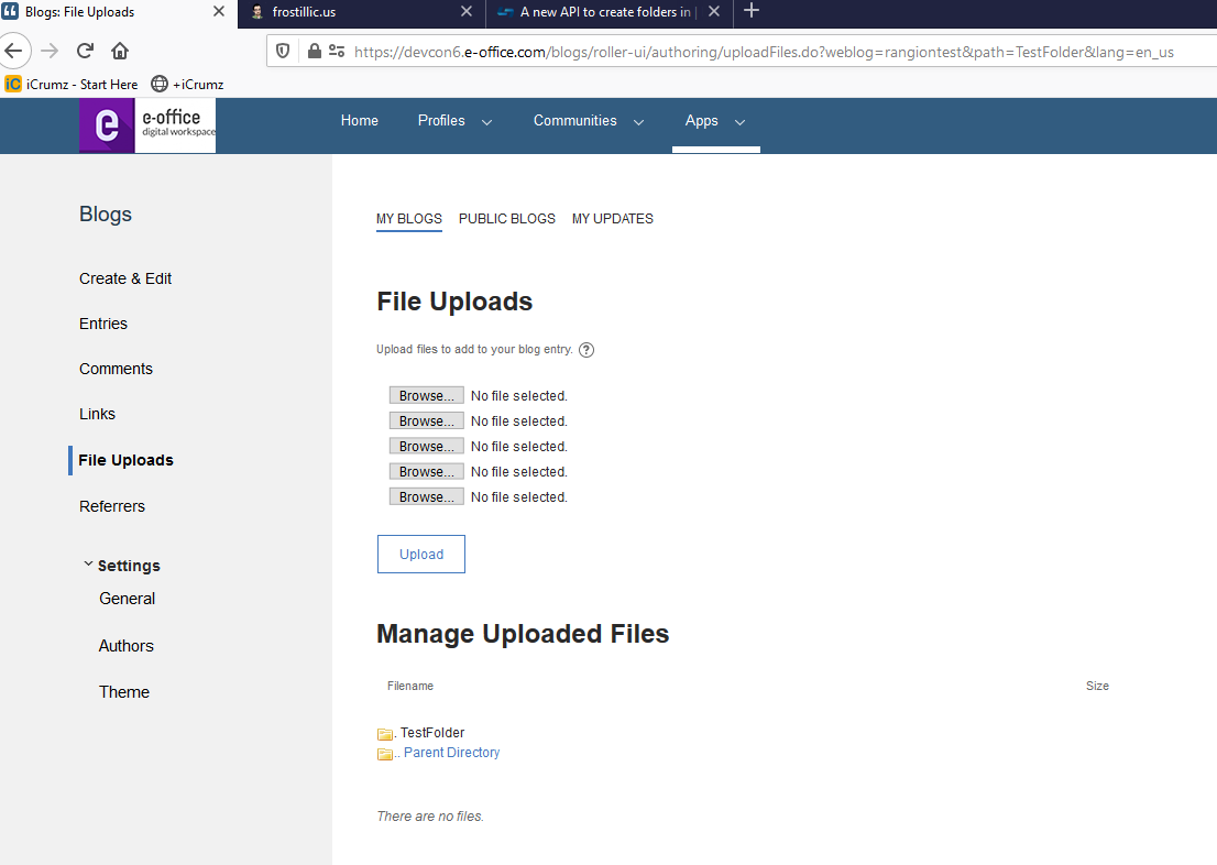 Why do you need folders in blogs? I dont understand your idea, now. You can create folders in your file app in connections and then set a link to them. Now you dont have redunant folder functionality.