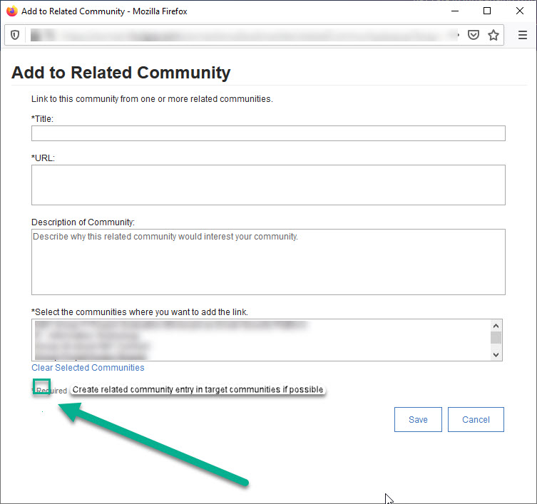 Enhance Bookmarking Tool Related Community - Add option for bidirectional entry when craeting a related community entry
