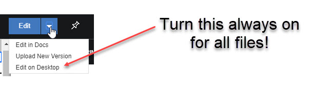 Enable "Edit on Desktop" for all file types and not only for these with the ability to be edited in Docs
