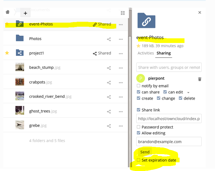 There shoud be the option to add an expiriation date or -period to files, that are shared with single persons only. The file will automatically move to the recycle bin after the expiration time and be processed as usual (extinction after defined period of time)