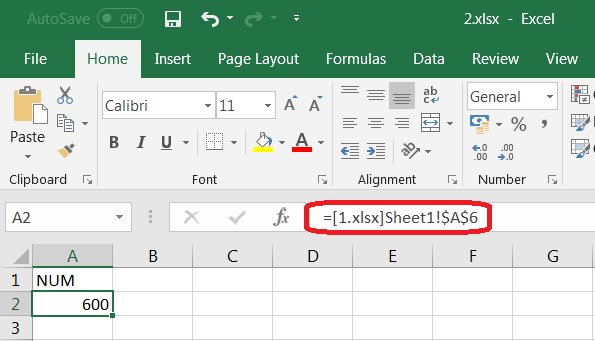 In office, we can use formula to display data from 1.xlsx in 2.xlsx.