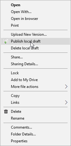 You already provide a right mouse click option to publish local drafts from the Windows Explorer. Unfortunately there is no property which shows the user which files have a local draft within this view (only accessible vie the tray icon at the very moment). Please add a corresponding view column like for "in My Drive"